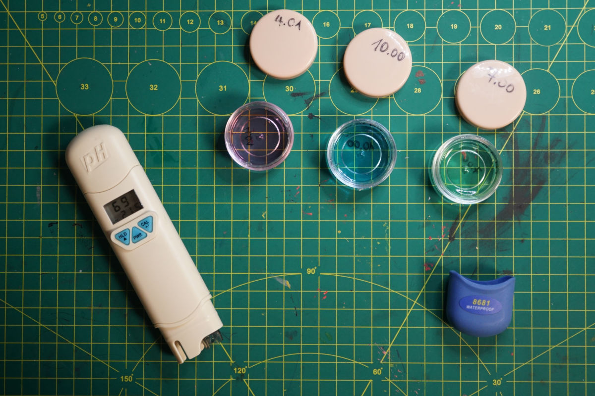 Ārvalstu informācijas avoti visi kā viens saka, lai aiziet uz veikalu, kur ir dārzniecības preces, un tur būs nopērkami dažādi jau sagatavoti “pH Up” un “pH Down” šķīdumi (un pH mērītāji, un zemenes ar pūdercukuru, un biezpiens ar rozīnēm). Konstanti caururbjoša tēma manos ķimerējumos ir tā, ka lokāli te nav ne-kā. Dārzniecības veikalos var atrast barību kapu krūmiem un tomātiem, bet pat keramzīta drenāžas bumbiņas vajadzēs meklēt īpaši. pH mērītāju kopā ar kalibrēšanas šķīdumiem pasūtīju no igauņu draugiem, piemēram, jo vietējie veikali nebūt neraujas tos piedāvāt.