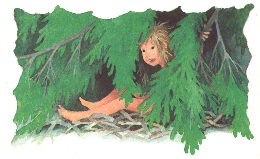 — No rīta mežu ielenca ķēniņa karakalpi un, piesardzīgi virzoties uz priekšu, tuvojās meža Vidum, kur atradās jaunekļa paslēptuve. Jauneklis to bija iekārtojis kādas egles skujotnē un ielencēju tuvošanos būtu pamanījis savlaicīgi, ja vien tobrīd neatradies izcirtumā, kur viņam savus noslēpumus atklāja viņa uzticamās draudzenes — puķes.