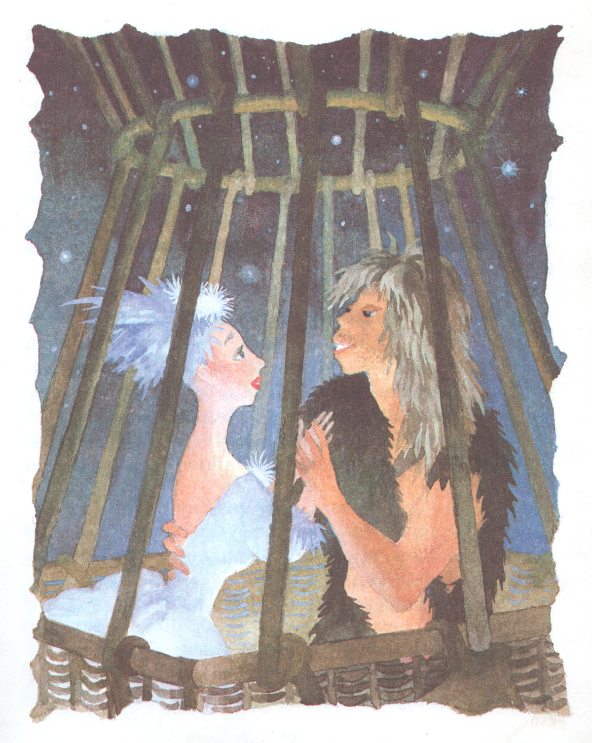 — Bet paklausies — ja ir tā, kā tu saki, tad jau tu nemaz neesi mežonis, bet īsts princis! — meitene drošina jaunekli. — Un tev nav no kā baidīties!